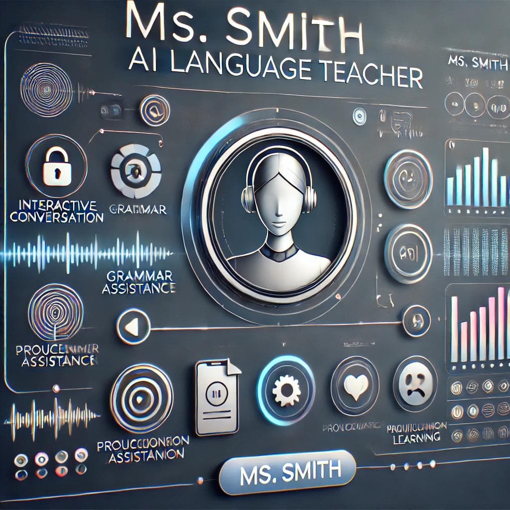 Ms. Smith es una asistente de aprendizaje de idiomas basada en inteligencia artificial, que proporciona ejercicios dinámicos, explicaciones gramaticales y prácticas interactivas adaptadas a las necesidades de cada estudiante. Su enfoque permite mejorar la fluidez y comprensión en distintos idiomas a través de conversaciones naturales.